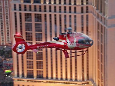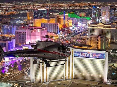 This is the most popular Las Vegas Strip helicopter tour. You can read the raving reviews of people who took this tour. The tour departs at about 8:30 pm, and the helicopter flies all over the Strip, passing by the most beautiful hotels, including Caesar's Palace, Bellagio, The Venetian.