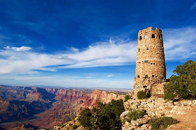 A great small group tour from Las Vegas for you to take that combines scenery and fun is the Grand Canyon National Park, Hoover Dam, and Route 66 Tour. Your 14-hour journey begins with hotel pick-up and a quick drive to Selligman, Nevada along the iconic Route 66 Highway. Here you stop for a short time for photos and continue traveling Hoover Dam. Once at the dam you have time to take photos and view downward at the Colorado River and gaze across the Black Canyon. Continuing forward you reach Grand Canyon National Park where your first stop is at Mather Point for spectacular views of the Colorado River and the colorful rock formations of Grand Canyon. Moving forward you stop at the Yavapai Geology Museum to earn more about the formation of Grand Canyon. The next stop is at Verkamp’s Visitor Center where you can take photos and a quick historic tour of the historic El Tovar Lodge and Hopi House. After you take in the incredible views at Mohave Point, you will have three hours to explore Grand Canyon National Park at your leisure. Your big day adventure concludes with drop-off service back at your hotel.